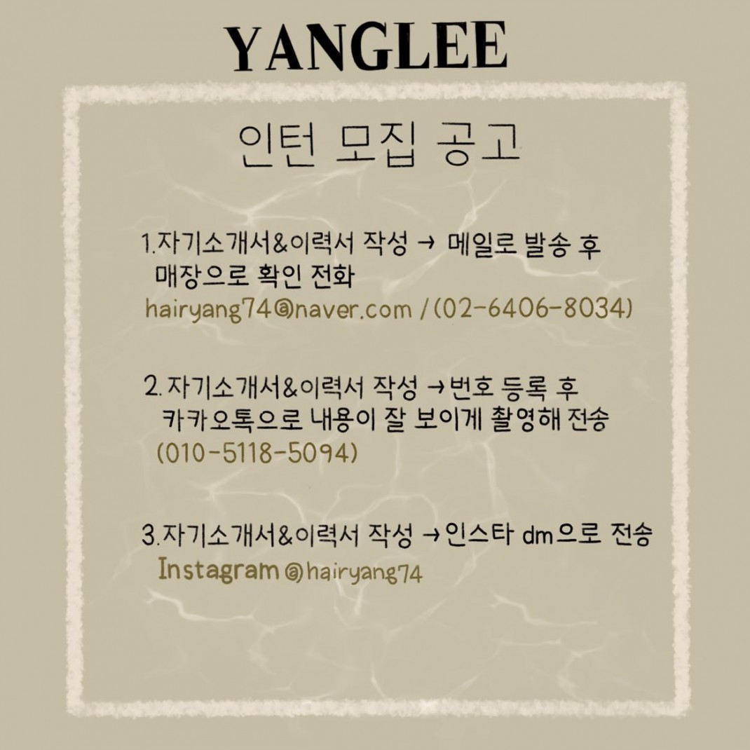 양리헤어 스텝 채용공고