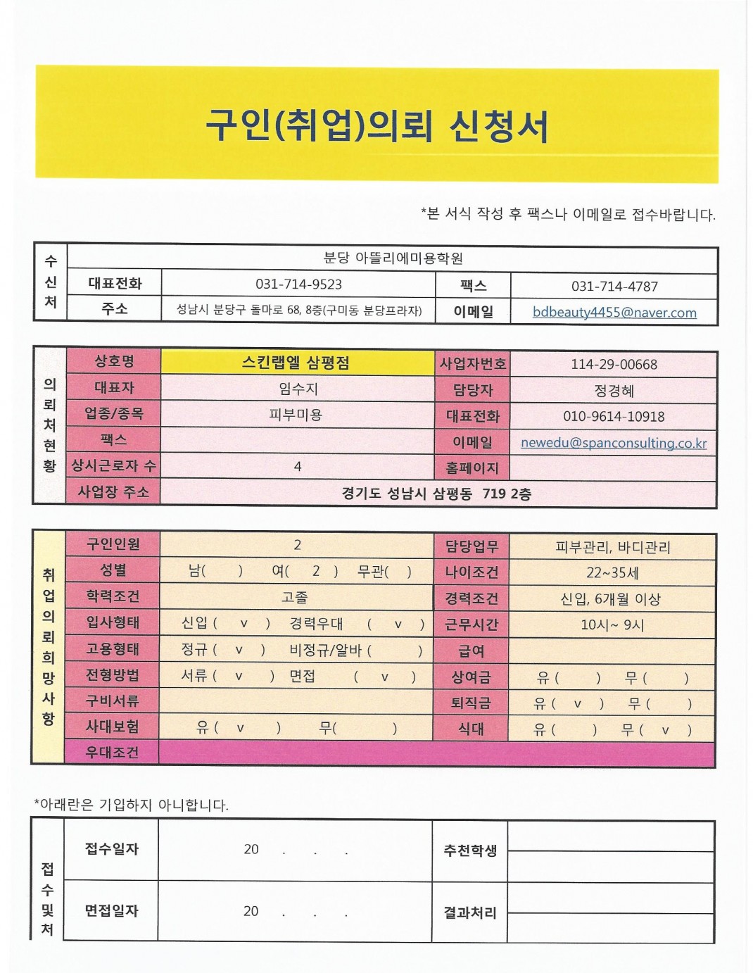 스킨랩엘 삼평점 직원 모집합니다 > 취업정보