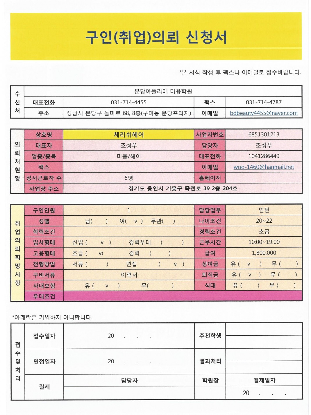 헤어 체리쉬 헤어 직원 모집합니다