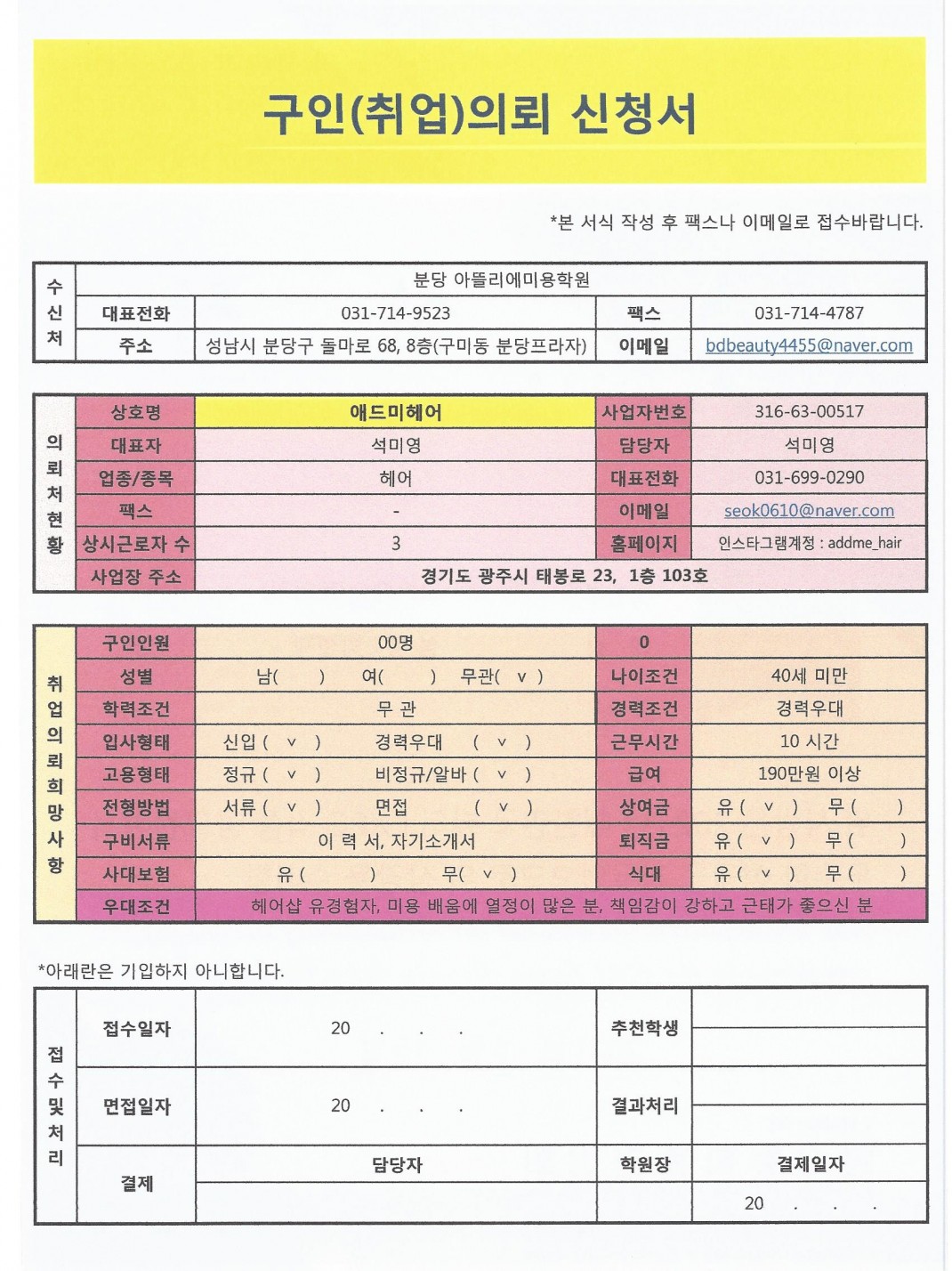애미드헤어 직원 모집합니다 > 취업정보