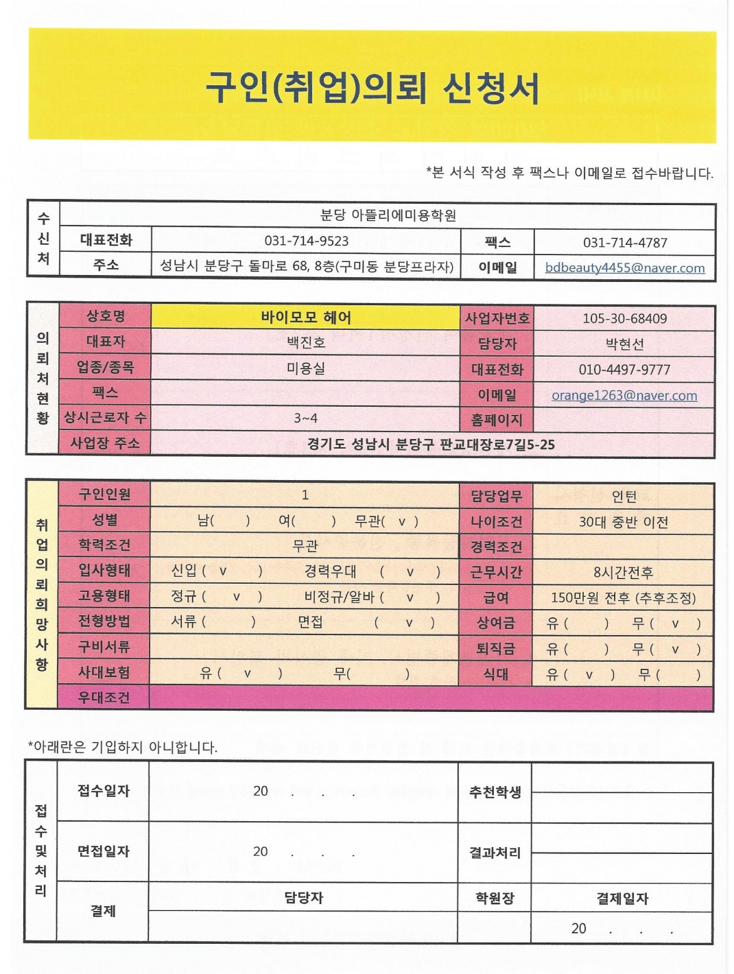 바이모모 헤어 직원 모집합니다 > 취업정보